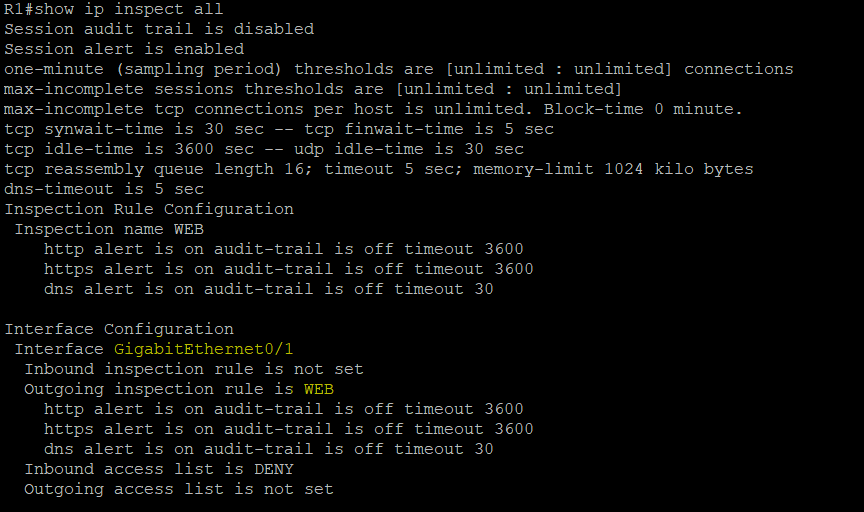 By these commands we have enabled inspection for http,https,dns traffic and the router will only allow the inspected traffic .