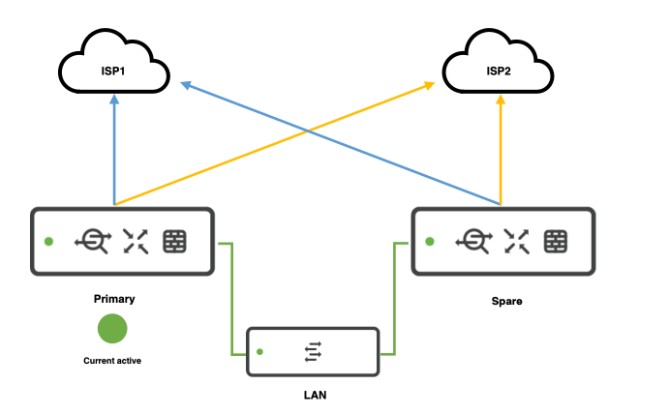 - The HA works by monitoring uplinks and LAN, and failing over automatically if the primary fails.